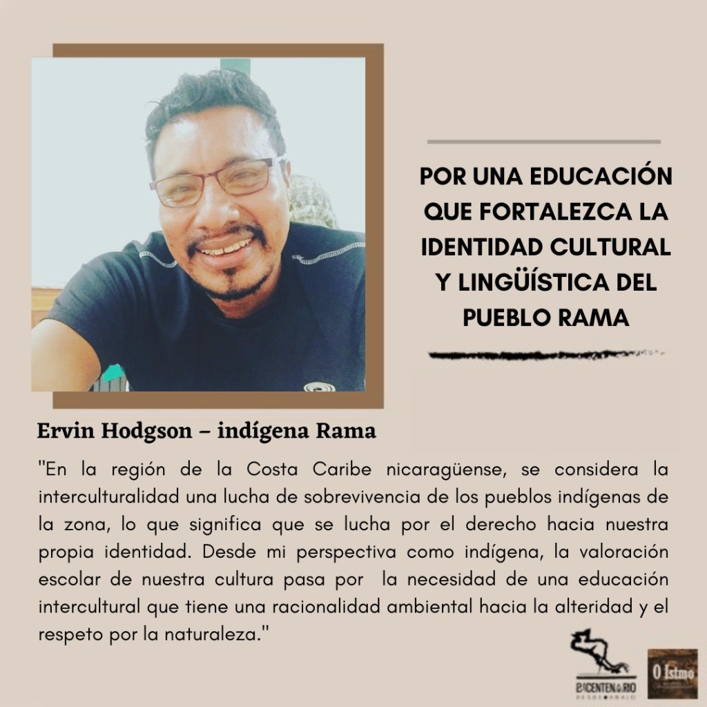 *ERVIN HODGSON es indígena Rama de la Costa Caribe de Nicaragua. Licenciado en Biología, Master en Educación intercultural, actualmente es profesor, investigador y coordinador de Instituto de Promoción e Investigación Lingüística y Cultural (IPILC) de la Universidad de las Regiones Autónomas de la Costa Caribe Nicaragüense (URACCAN).